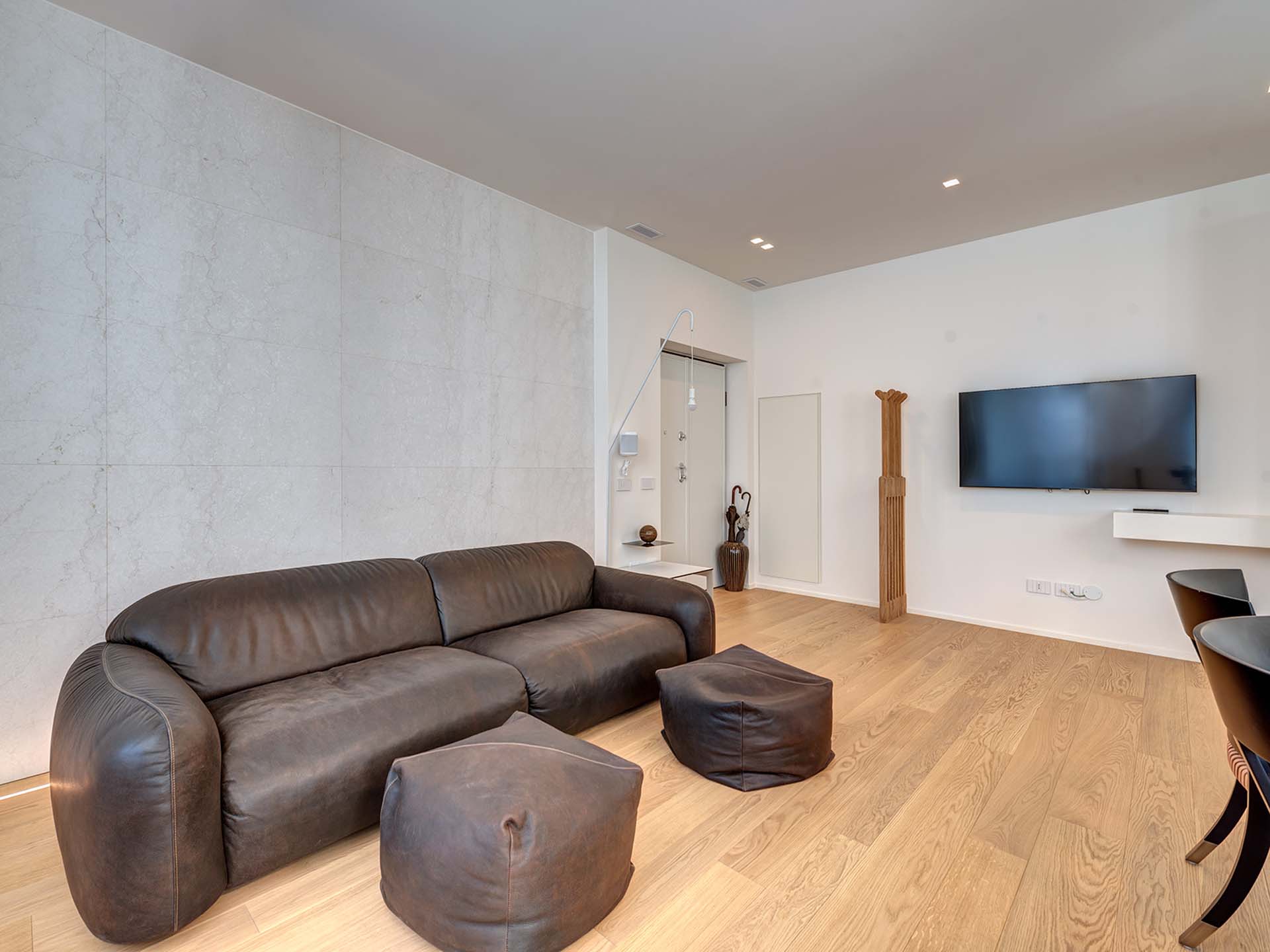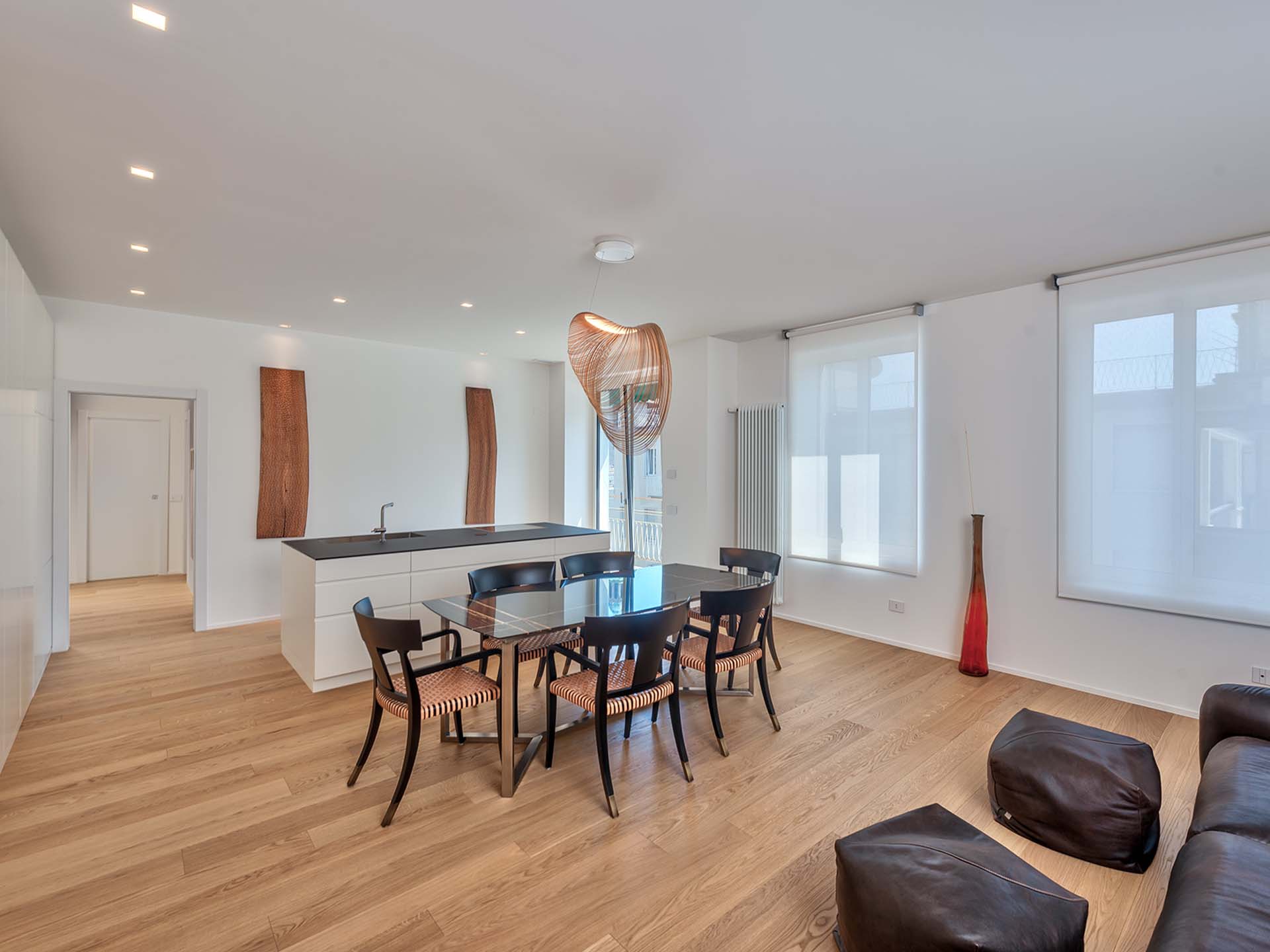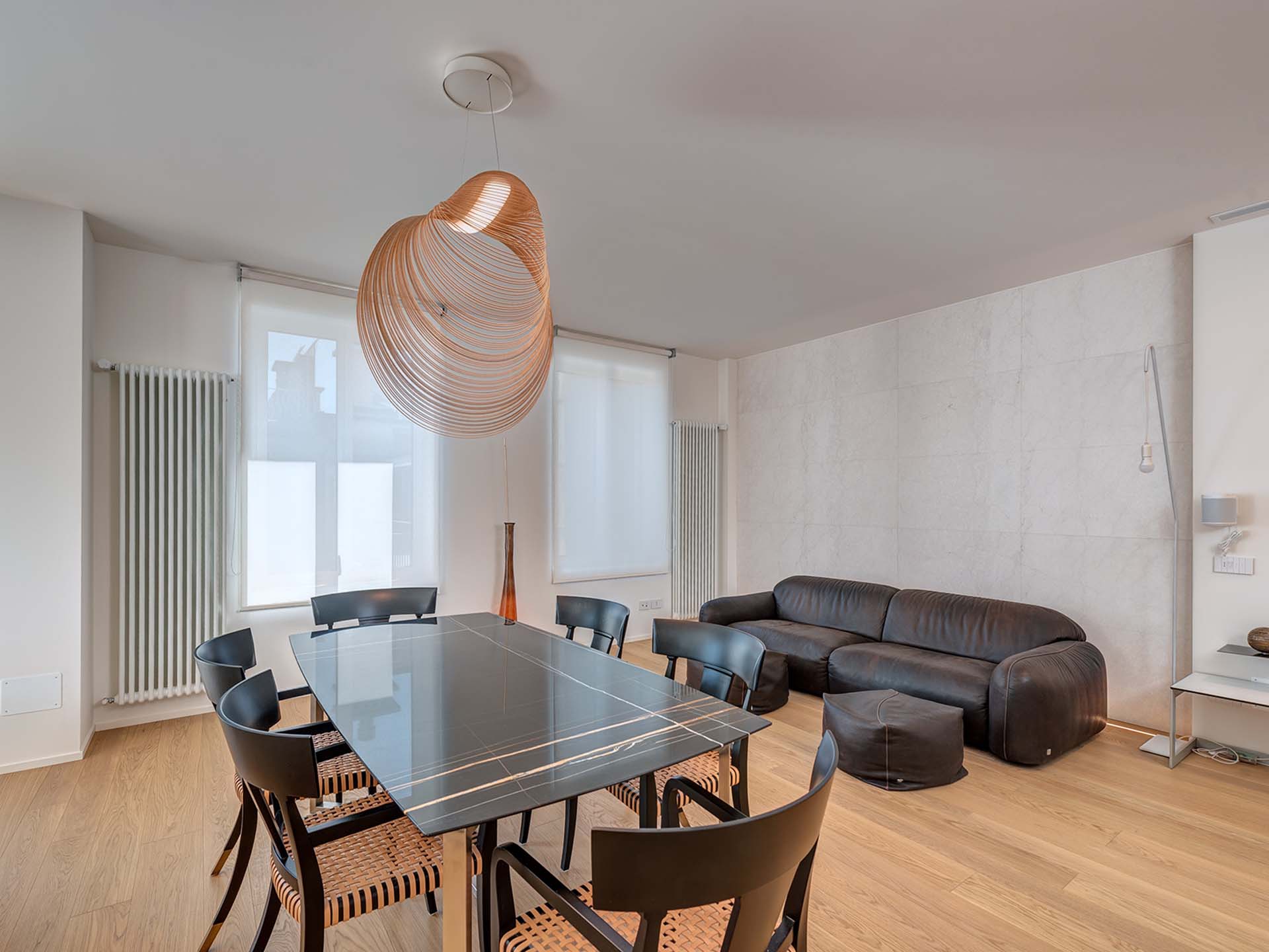 Entrambe le unità presentano uno stile omogeneo caratterizzato da arredi di design (inclusi nel prezzo), con una linea moderna e minimale arricchita da dettagli vintage. Gli arredi sono su misura, con tavoli e divani Oak Design, oltre agli elettrodomestici Miele, le cucine e le illuminazioni. I pavimenti sono in parquet e granito nei bagni.