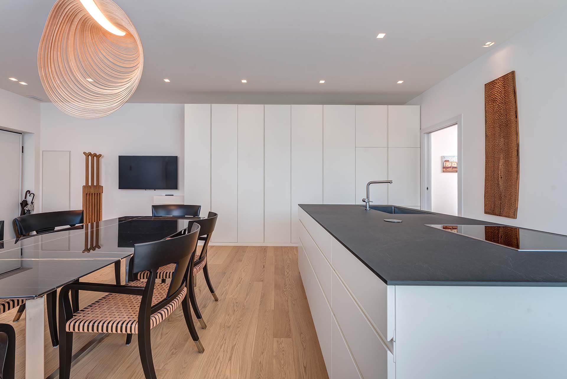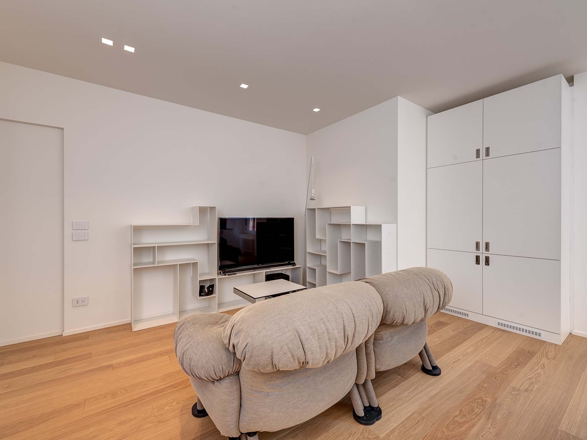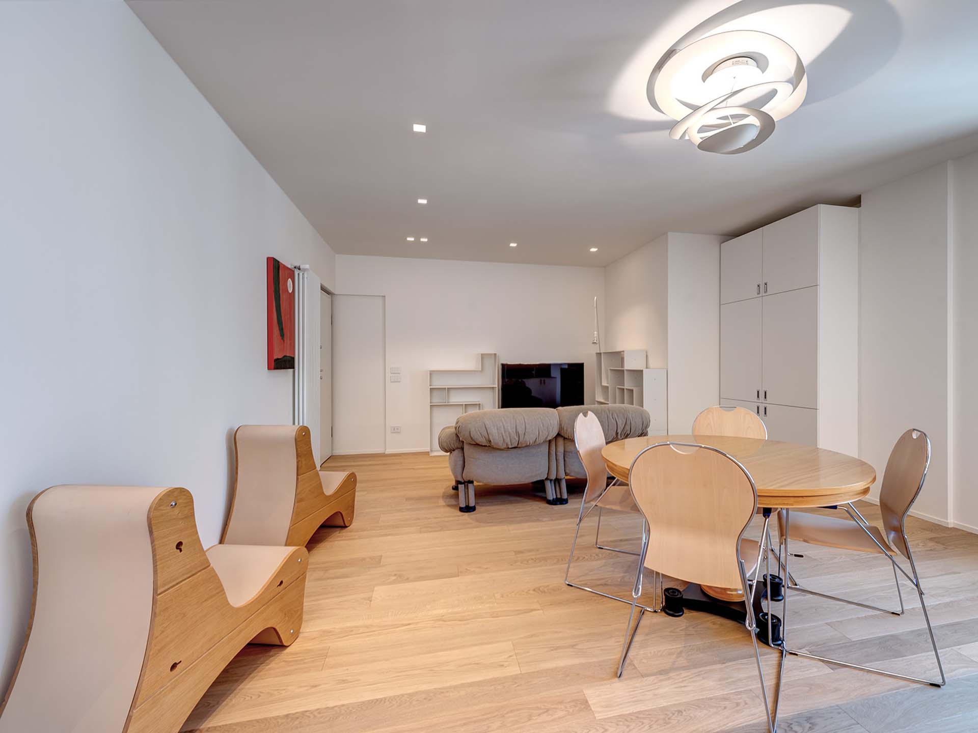 Entrambe le unità presentano uno stile omogeneo caratterizzato da arredi di design (inclusi nel prezzo), con una linea moderna e minimale arricchita da dettagli vintage. Gli arredi sono su misura, con tavoli e divani Oak Design, oltre agli elettrodomestici Miele, le cucine e le illuminazioni. I pavimenti sono in parquet e granito nei bagni.