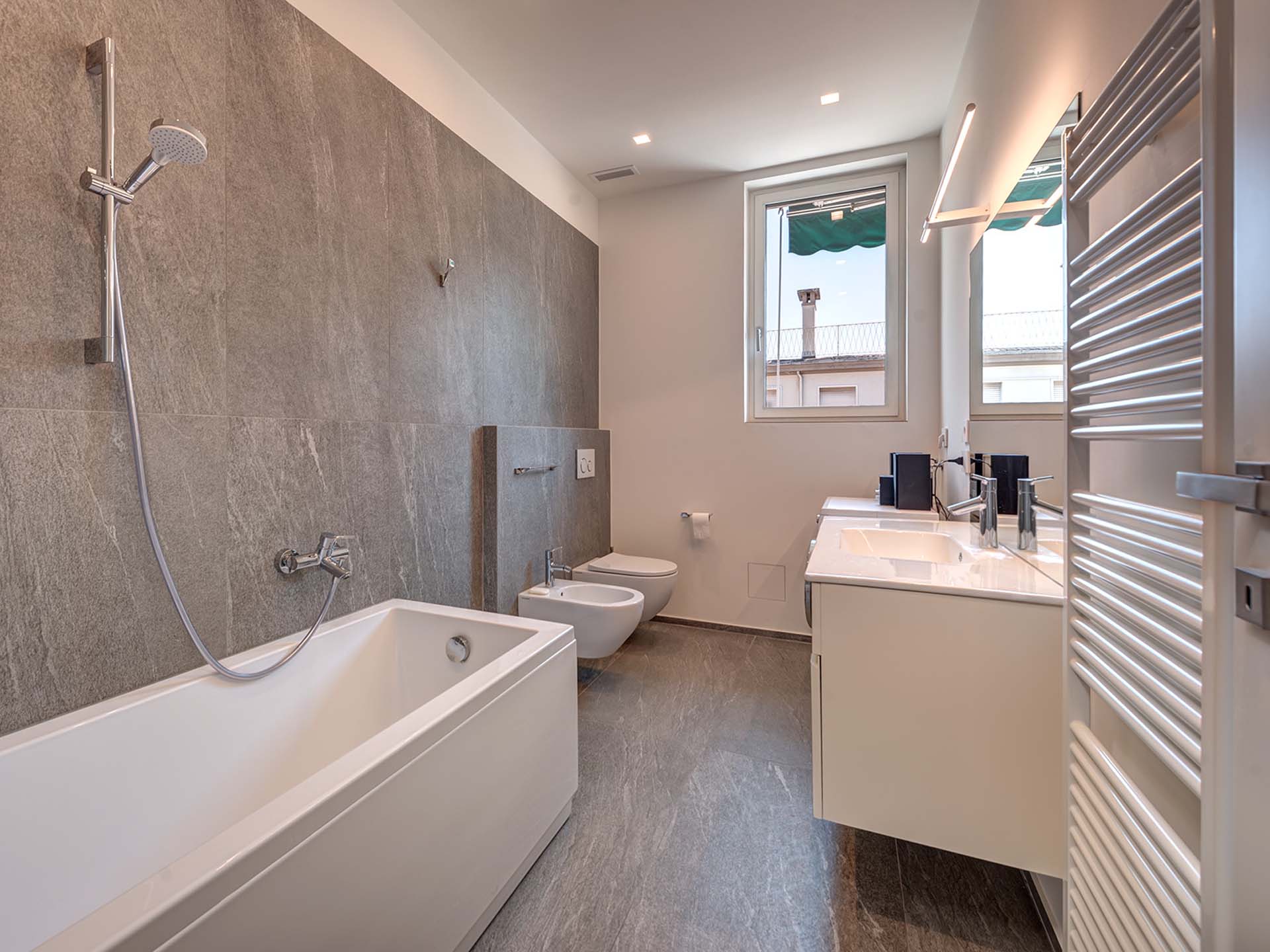 Como centro, a pochi passi dal lago e dal Duomo, moderno appartamento recentemente ristrutturato posto al sesto piano di un elegante contesto residenziale dotato di ascensore e portineria. La proprietà comprende due unità abitative, un trilocale e un bilocale, ciascuna con ingresso indipendente, con la possibilità di unirle.