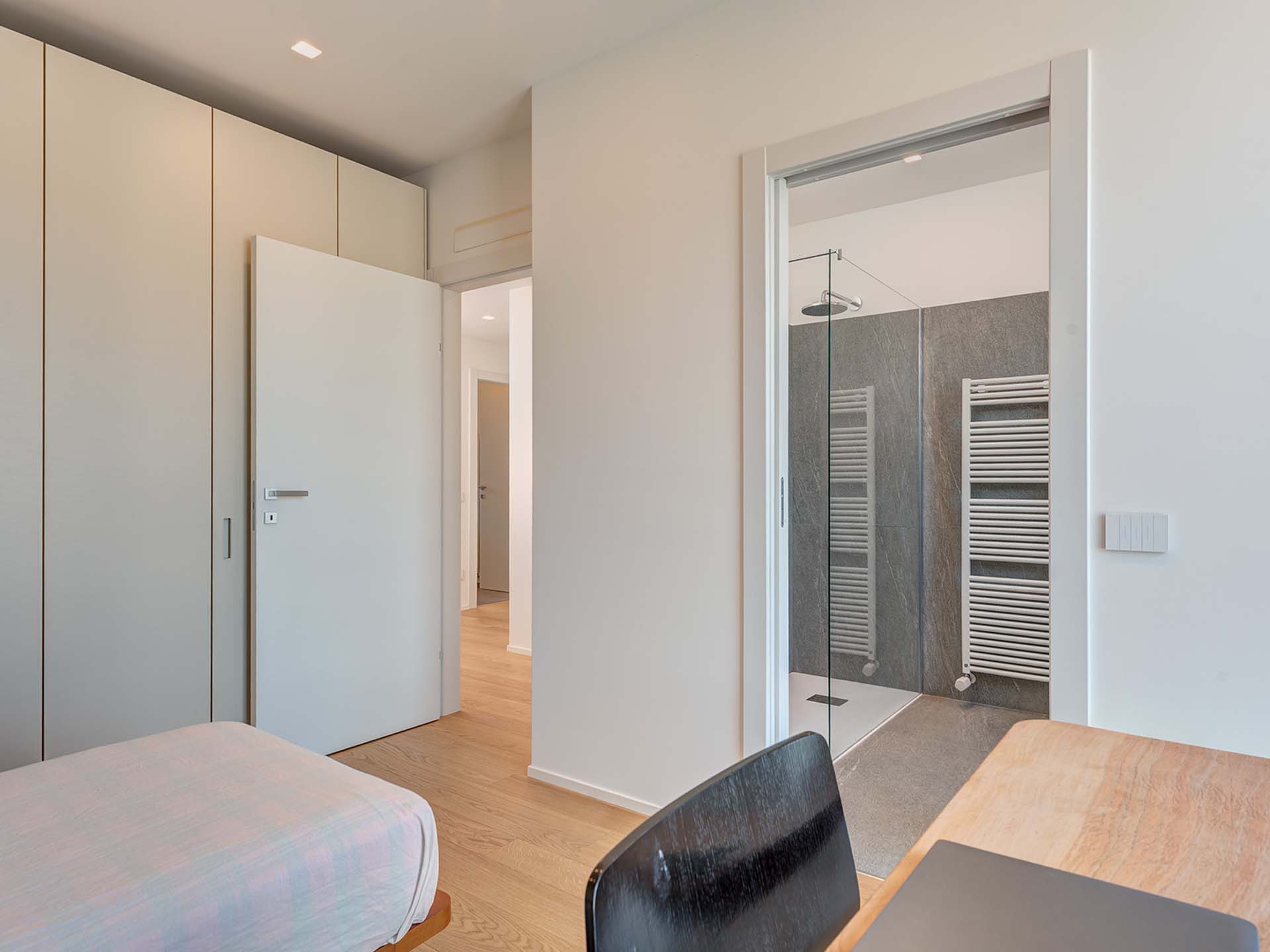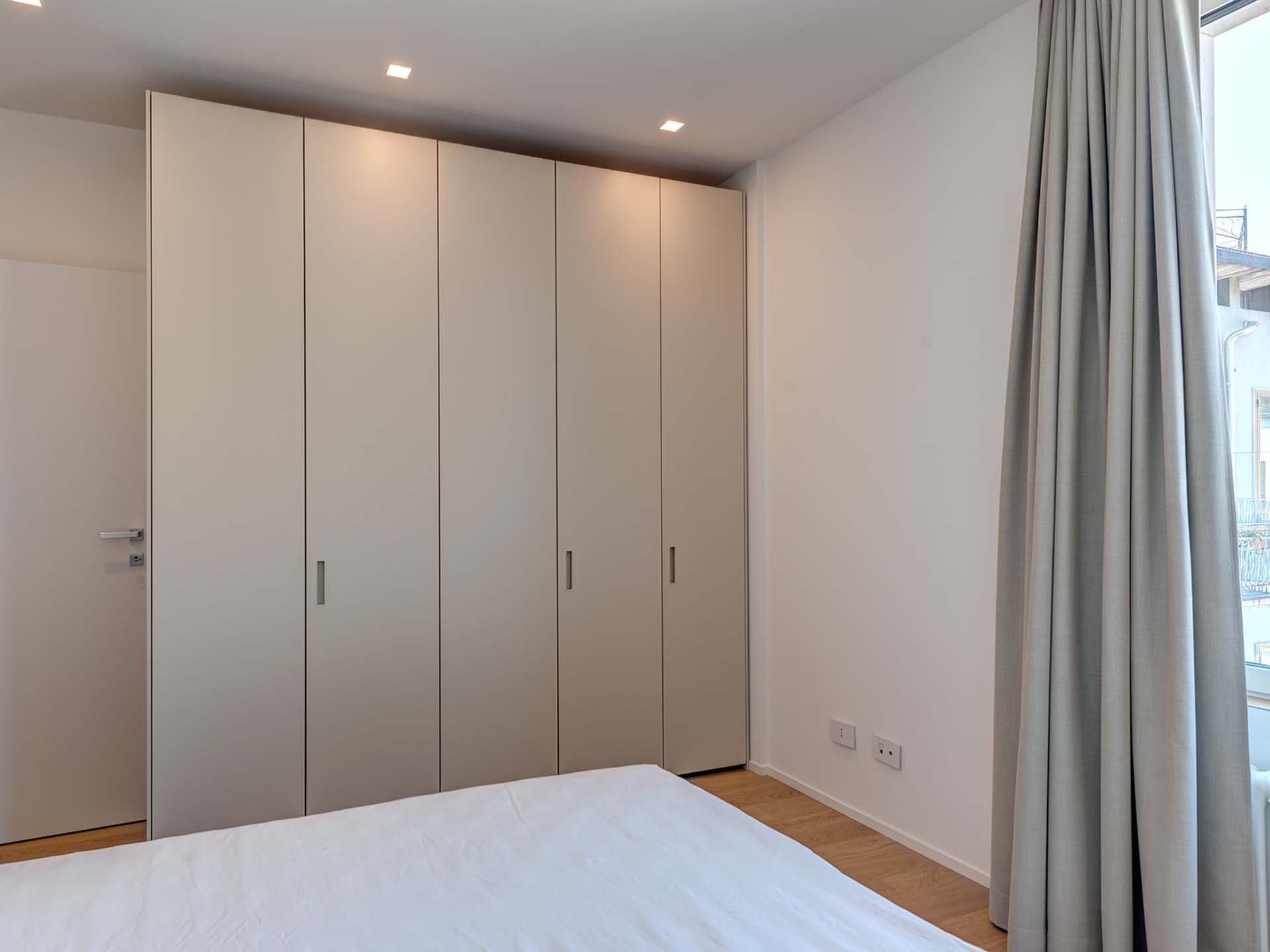 Il trilocale, di circa 125 mq, offre un’accogliente zona giorno che include una cucina ad isola moderna e un terrazzo con vista sul Duomo. La zona notte è composta da due ampie camere matrimoniali, una delle quali dispone di un bagno en suite con doccia e un balcone. Completano l’unità un ulteriore bagno con vasca e un ripostiglio.